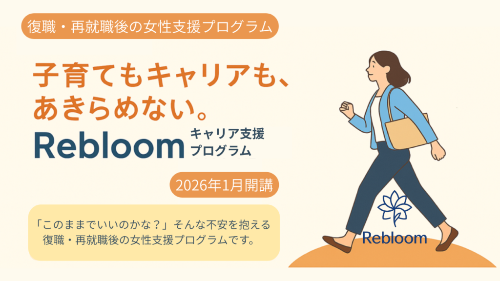 【Rebloomプログラム】モデル第1期・受講生募集 子育てもキャリアもあきらめない。未来の私に自信がもてる3か月へ。
