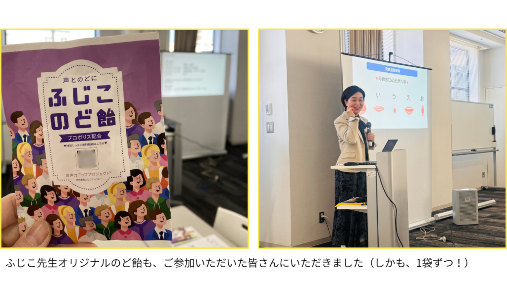 今回ご登壇いただいたのは、声と表現指導の専門家である藤重知子先生(通称:ふじこ先生)。